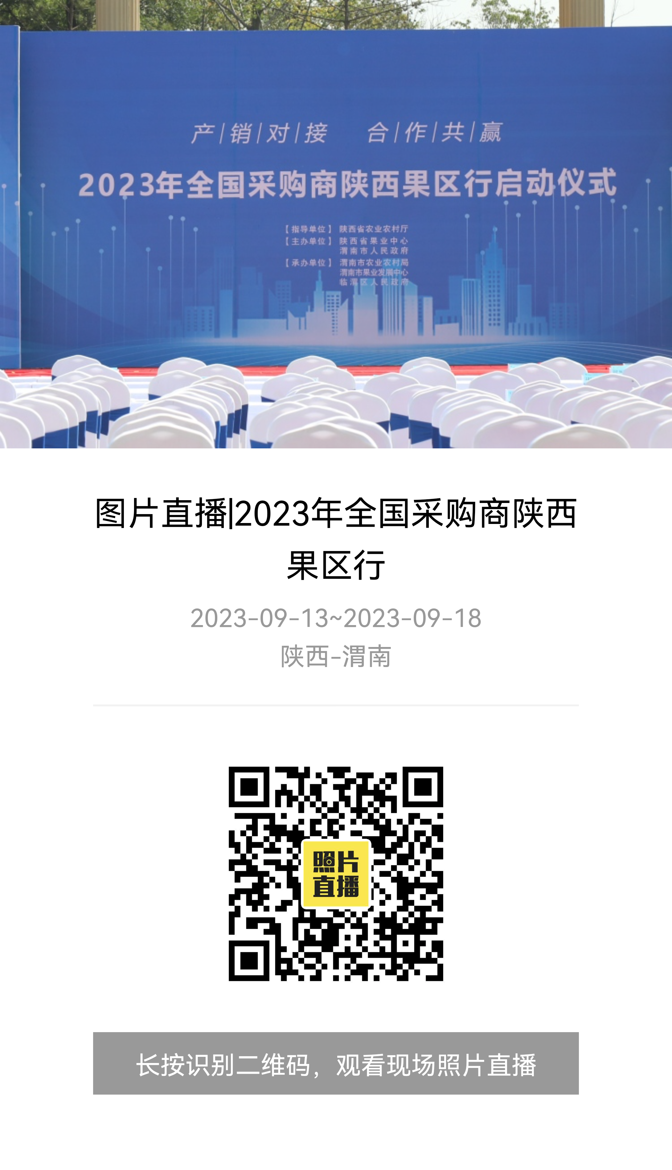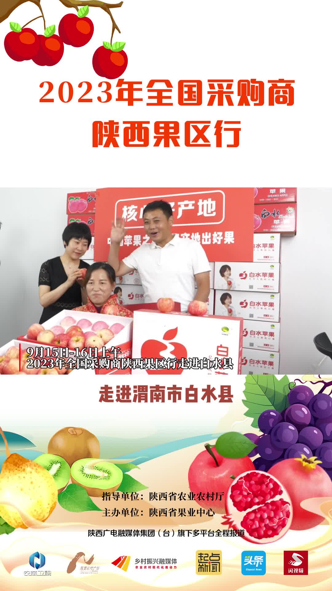 由陕西省农业农村厅指导,陕西省果业中心主办的2023年全国采购商陕西果区行活动9月14-18日举办,陕西广电融媒体集团(台)旗下多平台全程报道。陕西乡村振兴融媒体平台(乡村振兴新闻网)同步联合各级各类媒体集中推广陕西水果品牌,为销售助力。