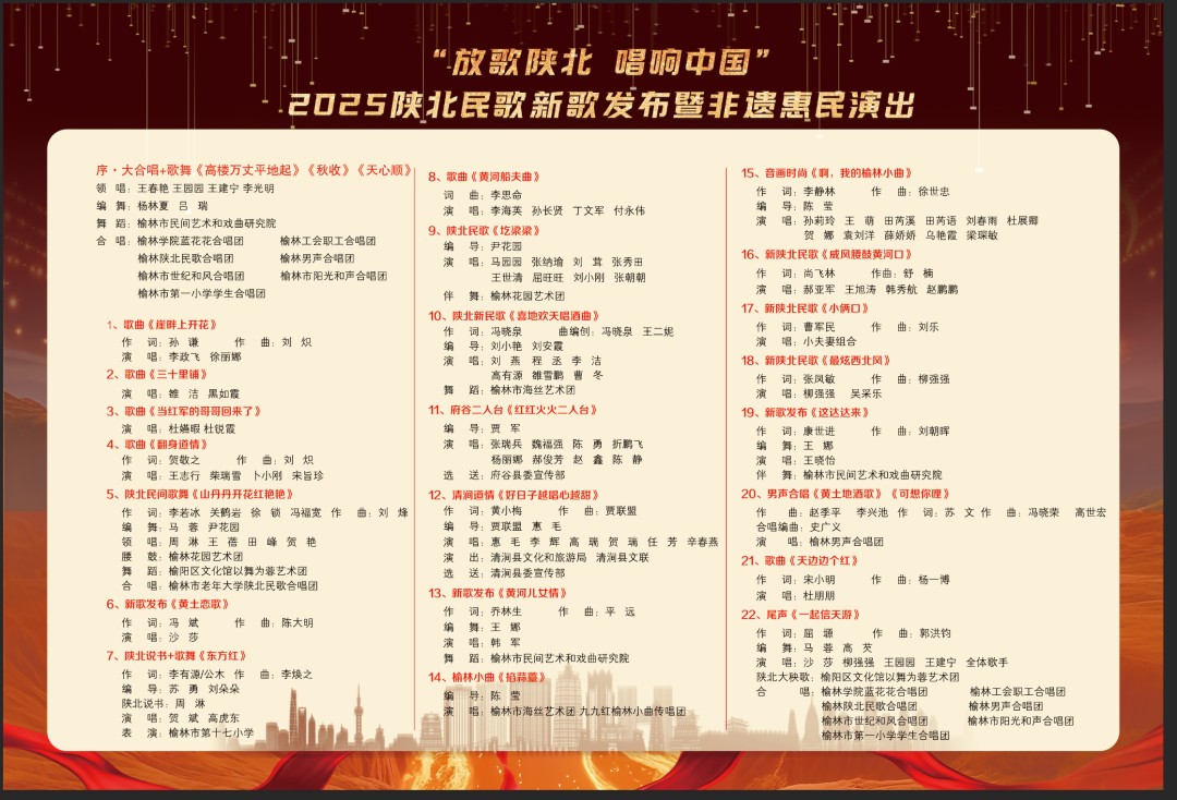 民歌高手云集 新歌发布更嘹亮——榆林古城明晚将举行2025陕北民歌新歌发布会暨非遗惠民演出