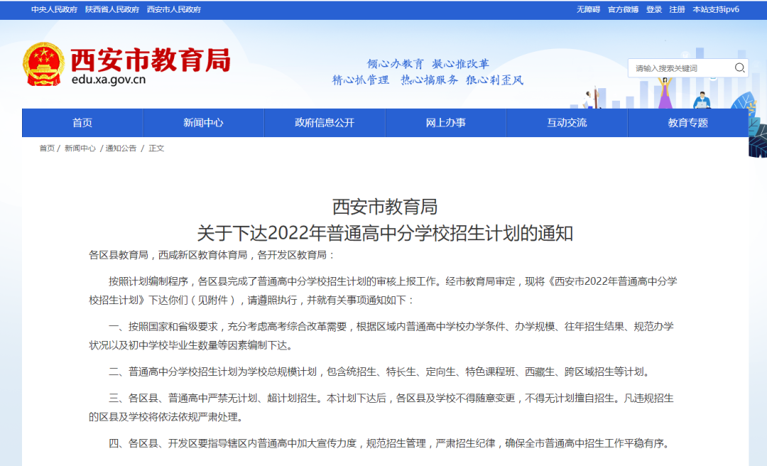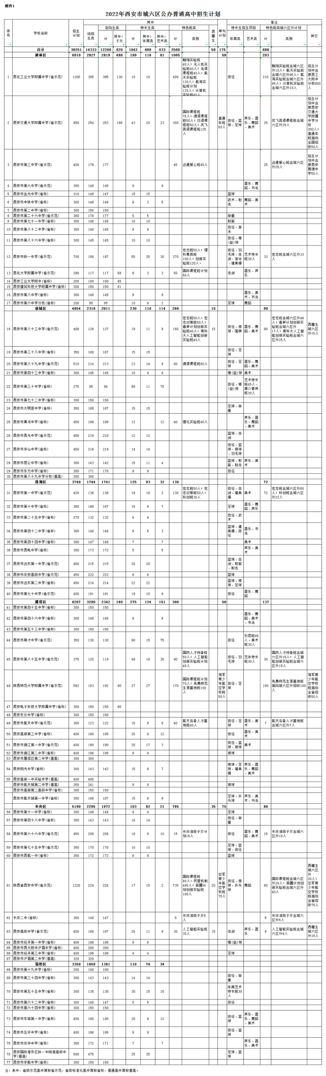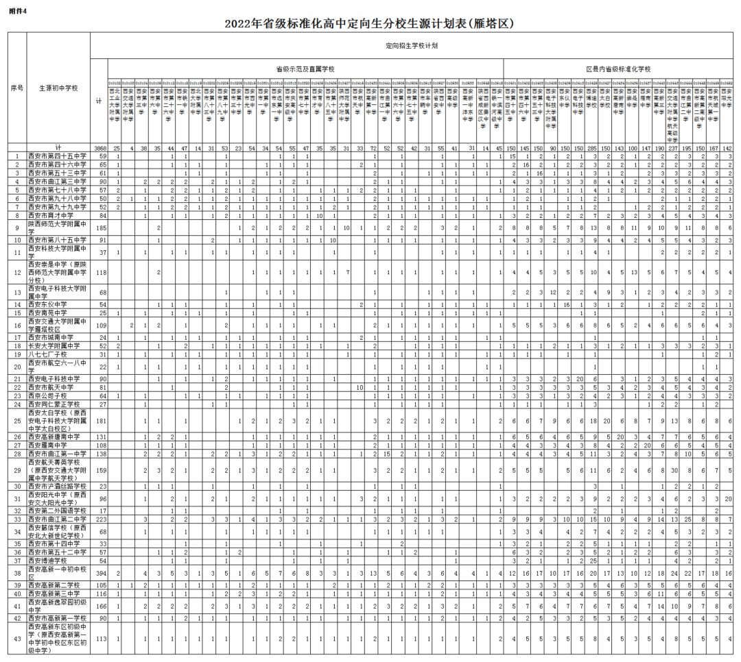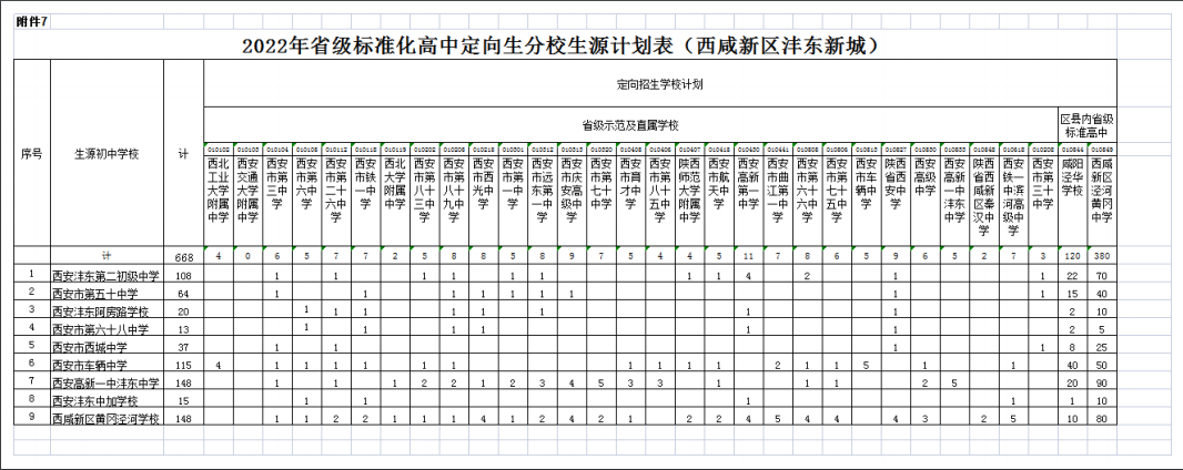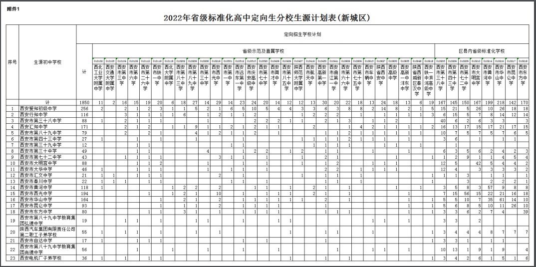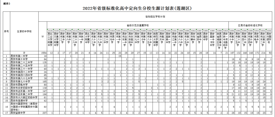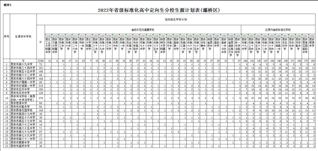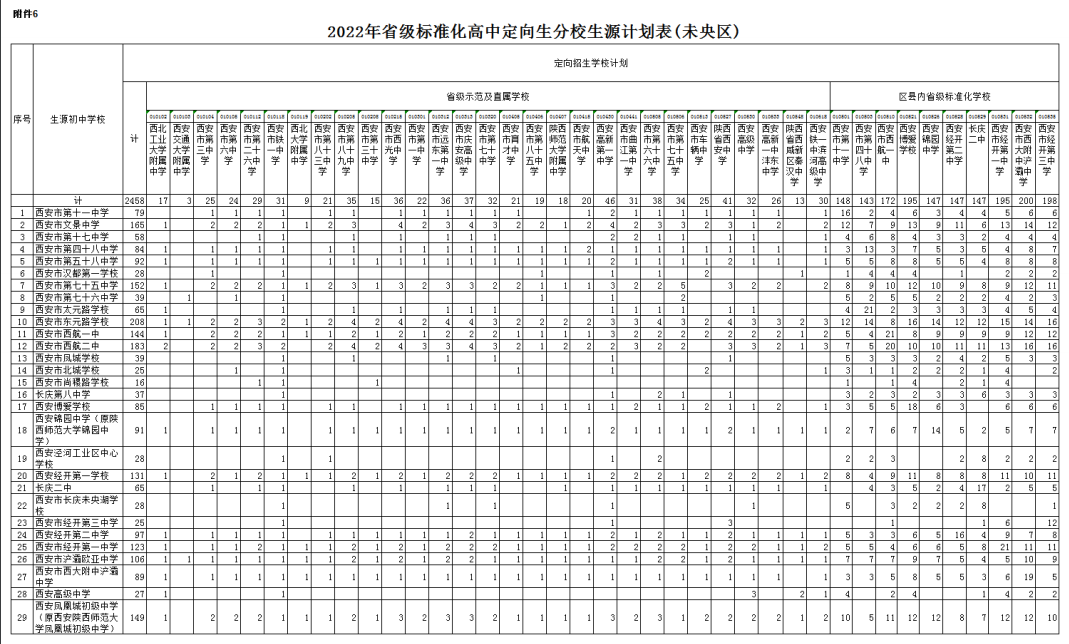 按照计划编制程序,各区县完成了普通高中分学校招生计划的审核上报工作。经市教育局审定,现将《西安市2022年普通高中分学校招生计划》下达你们(见附件),请遵照执行,并就有关事项通知如下: