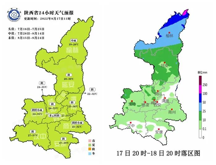 今天下午:陕北多云间阴天,关中晴天转多云,陕南多云。榆林大部有小到中雨,过程期间伴有短时暴雨和雷暴大风天气。延安西部部分、宝鸡西部、汉中西部局地有小雨或阵雨。关中南部、陕南大部有35℃以上高温,部分地方可达38-40℃。