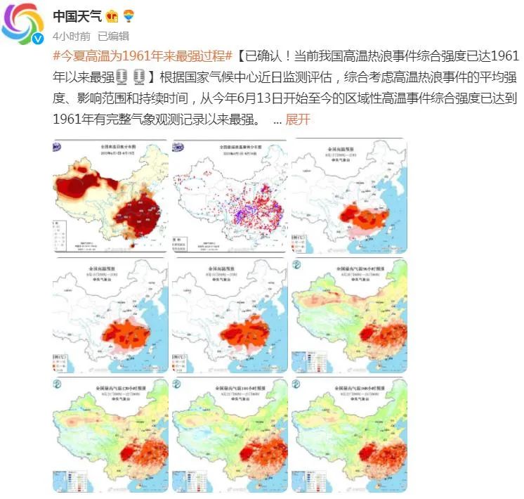 国家气候中心:当前我国高温热浪事件综合强度已达1961年以来最强