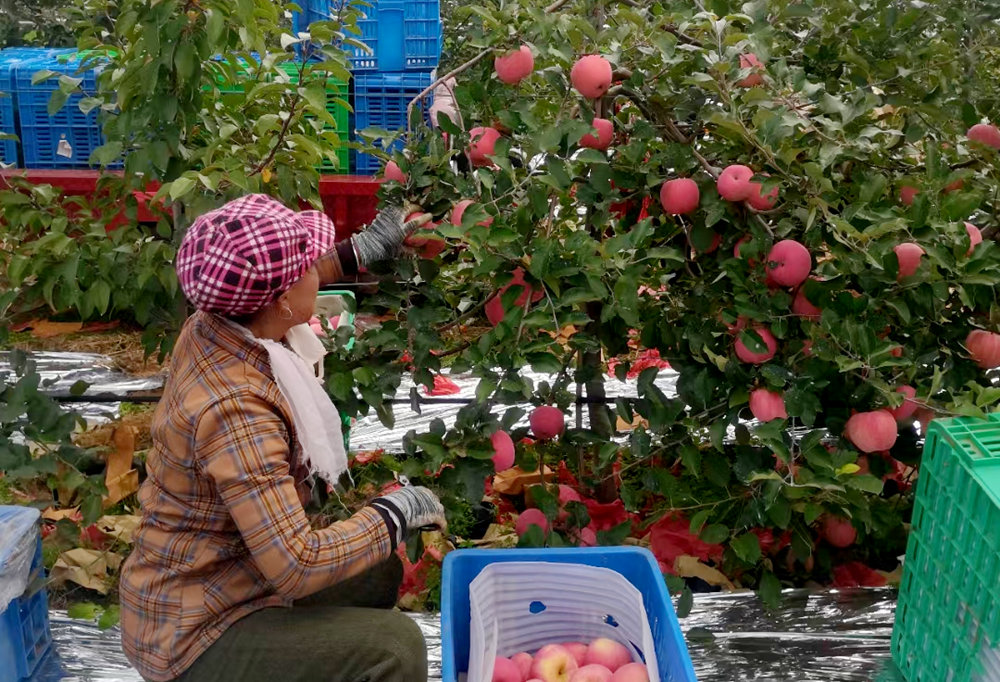 果农正在延安“飞天苹果”种植基地采摘苹果
