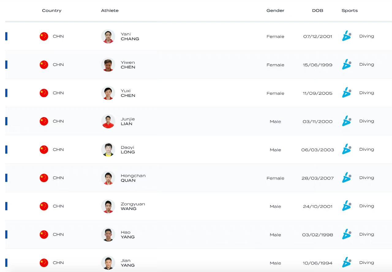 4月6日晚,世界泳联公布了2023跳水世界杯西安站参赛名单,中国队此次共派出昌雅妮、陈艺文、陈芋汐、练俊杰、龙道一、全红婵、王宗源、杨昊、杨健等9人参加。
