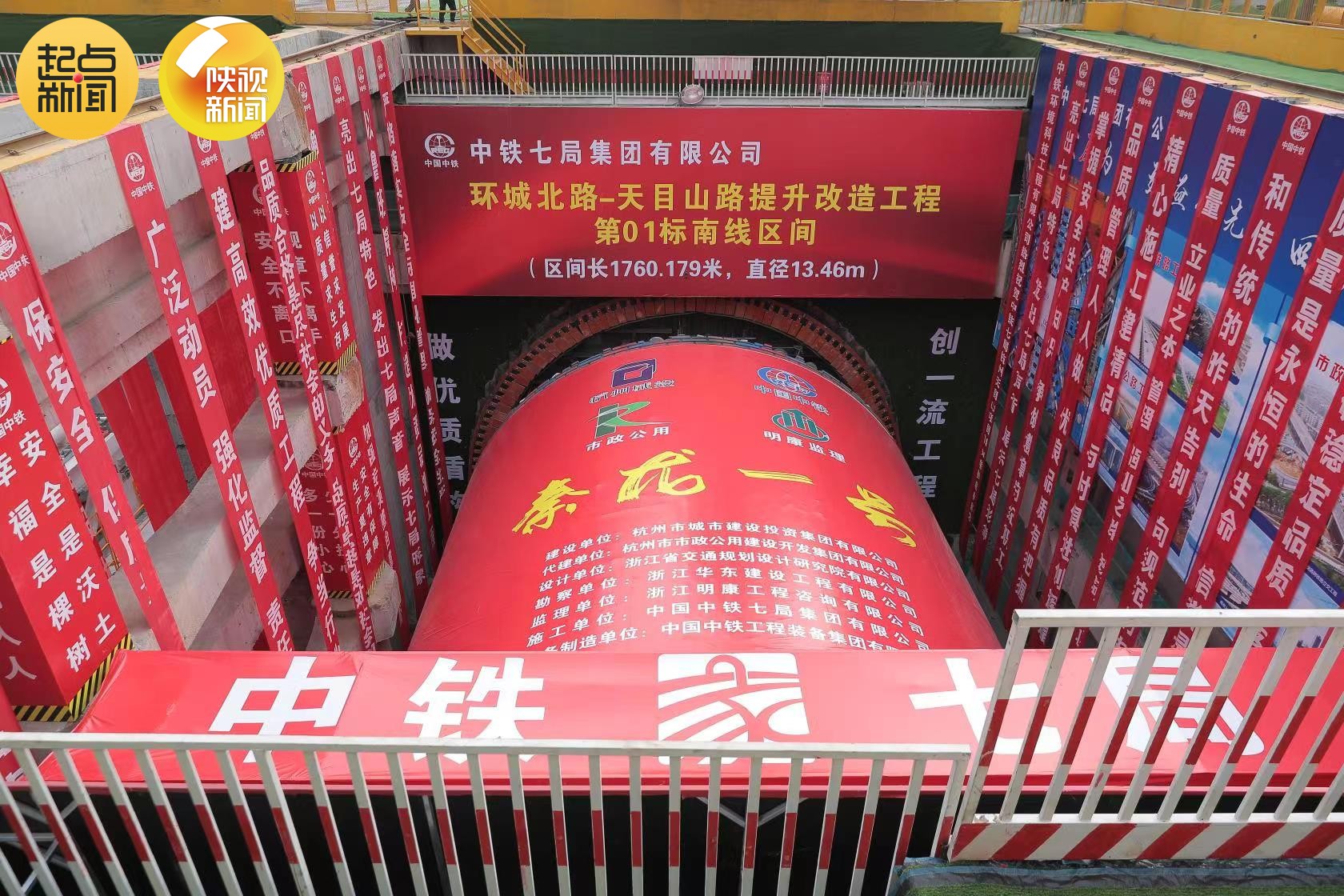 天目山路是杭州西进城的交通主动脉,也是杭州亚运会的重要保障道路之一,备受关注。为保证盾构隧道高质量安全施工,中铁七局专门购置了两台由中国中铁自主研发生产的13.46米大直径泥水平衡盾构机,分别命名为“秦龙一号”和“秦龙二号”。