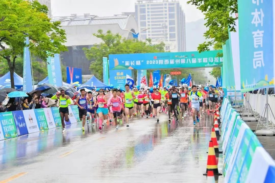 4500多名选手在雨中感受速度与激情 陕西彬州第八届半程马拉松赛举行