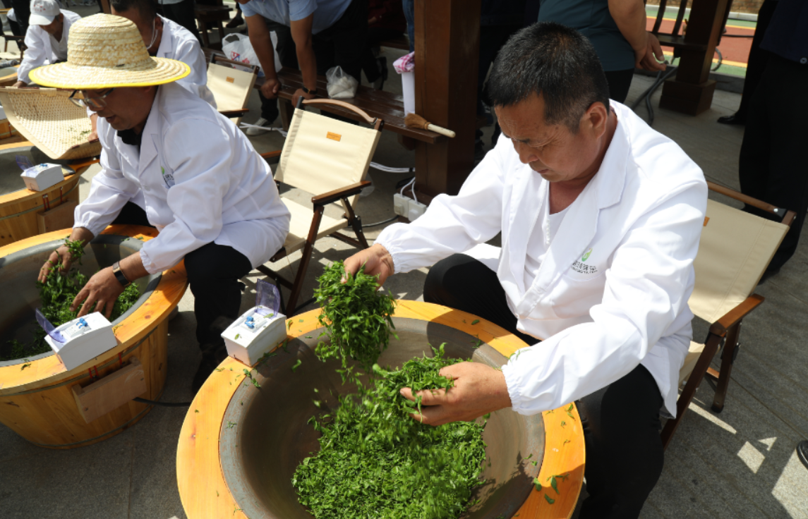 工作人员现场炒制延安枣芽茶