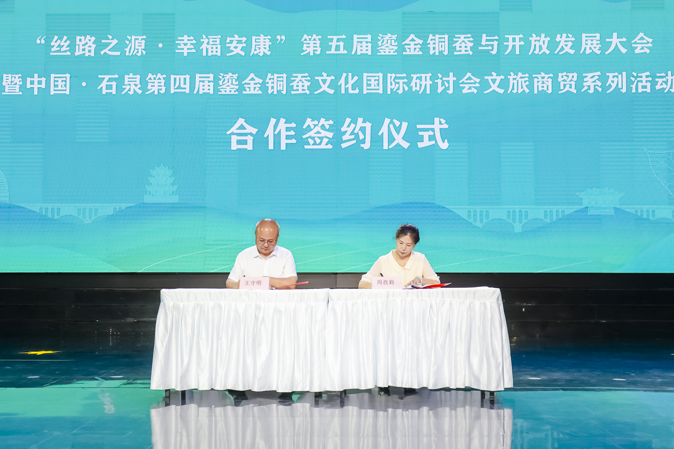 据了解,石泉县是中国蚕桑之乡、西北蚕桑第一大县,因“鎏金铜蚕”在境内出土,被誉为“鎏金铜蚕·丝路之源”。 2019年7月、2021年6月、2022年6月,石泉县先后在石泉和西安成功举办了三届鎏金铜蚕文化国际研讨会暨文旅商贸系列活动,取得丰硕成果,形成“丝路起点在长安、丝路之源在石泉”的共识,促进了招商引资和对外合作交流,实现了“一片桑叶富裕一方百姓、一枚金蚕助推产业振兴”的县域经济发展目标。(记者 石永波)