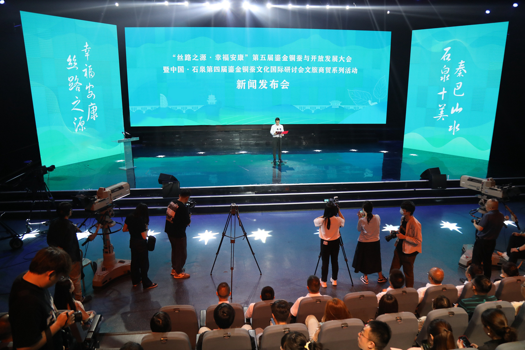 6月9日,由陕西历史博物馆、安康市文旅广电局、中共石泉县委、石泉县人民政府主办的“丝路之源·幸福安康”第五届鎏金铜蚕与开放发展大会暨中国·石泉第四届鎏金铜蚕文化国际研讨会系列文旅商贸活动新闻发布会在西安举行。新闻发布会上主办方宣布:系列活动将于6月中旬至6月底在安康市石泉县举办,6月15日在池河明星村举行开幕式及“开蚕门”仪式。