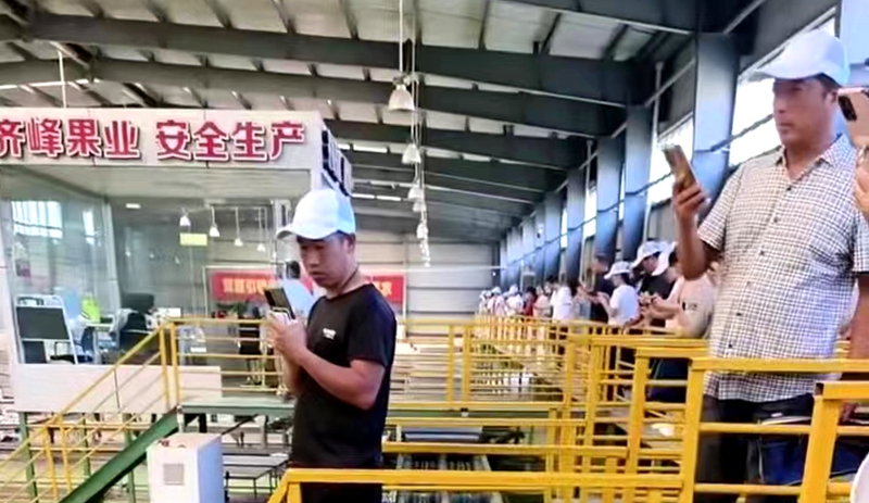 参训学员在齐峰果业猕猴桃分选车间拍摄短视频