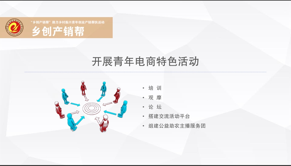 乡创团团帮频道以服务入乡归乡逐梦沃野的青年创业者为核心宗旨。其中,“乡创产销帮”,主要依托省青年电商联合会等组织,发挥助农主播团队作用,帮助解决乡村创业青年产品“销售难”问题。
