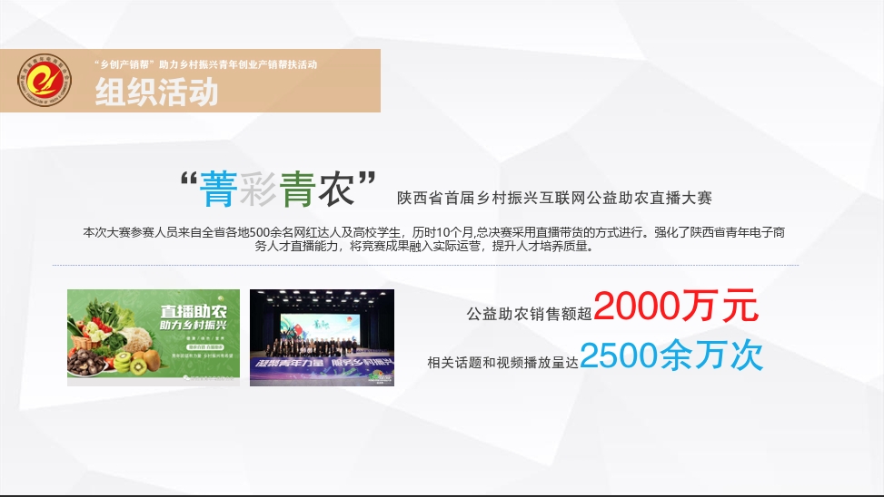 三年来,青电联承办了“‘菁彩青农’陕西省首届乡村振兴互联网公益助农直播大赛”,在大赛活动期间,公益助农销售额超2000万元,相关话题和视频播放量达2500余万次。
