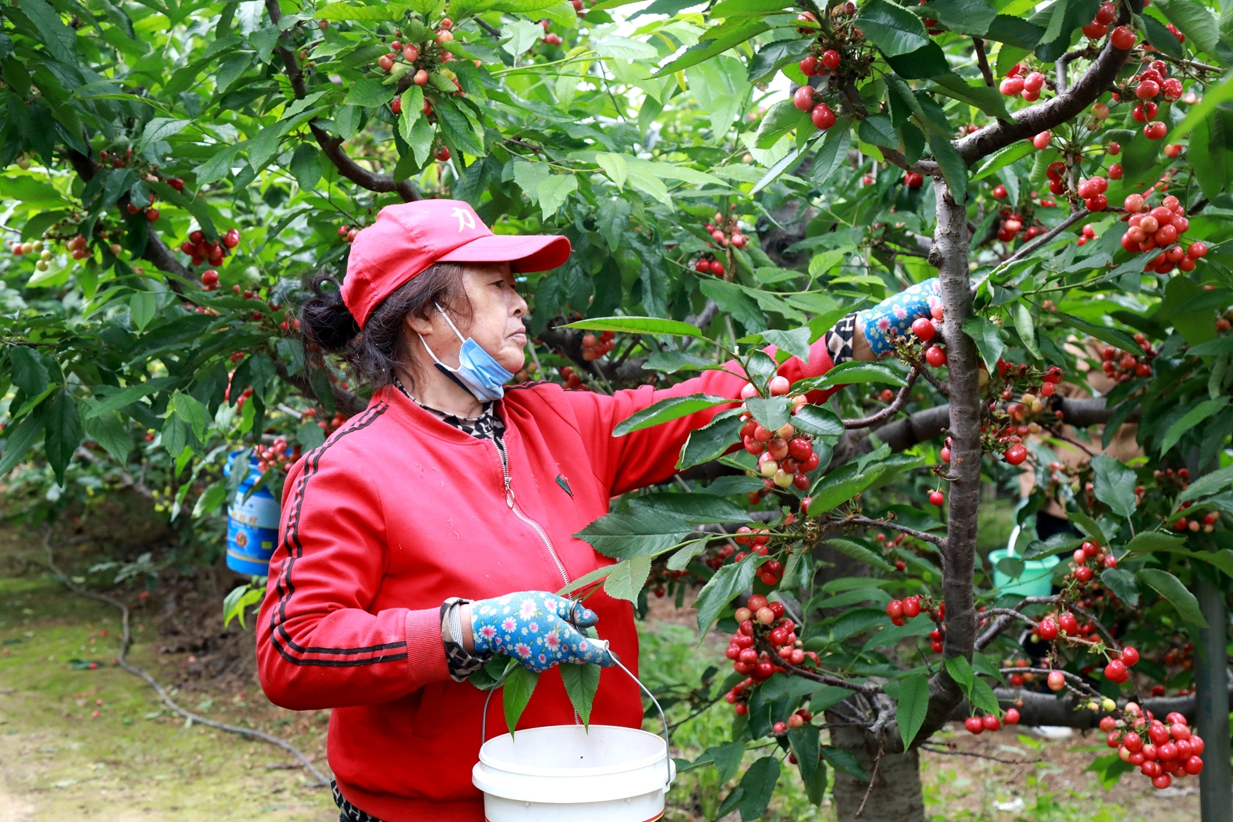 永内村村集体经济合作社樱桃园每年可带动35户脱贫户,通过入园务工和分红等,每年每人净收入在5000块钱左右。