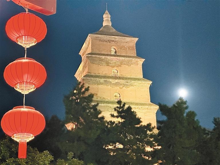 9月17日,中秋月色下的大雁塔更显古朴庄重。