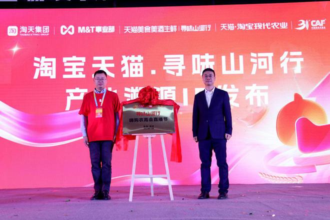 杨凌云上农高会负责人与淘天集团食品生鲜直播大事件负责人谢士杰共同为寻味山河行.嗨购农高会直播节揭牌。