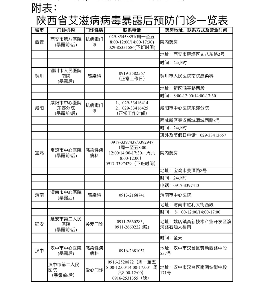 17个!陕西发布艾滋病病毒暴露后预防门诊名单→