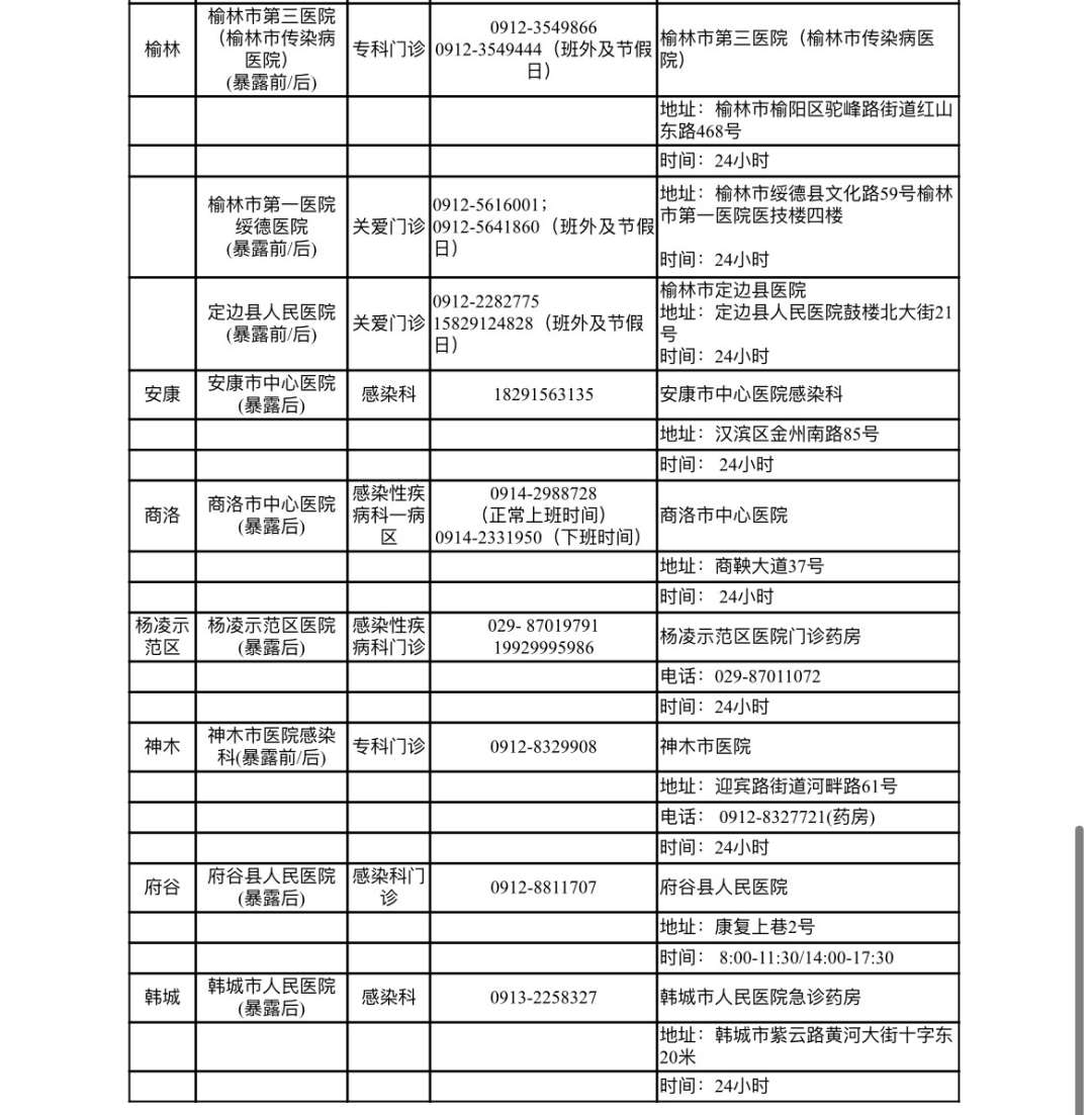 记者了解到,目前全省有17个定点医院开展暴露后预防工作,分布全省10个设区市、杨凌区、韩城市、神木市和府谷县(见附表)。