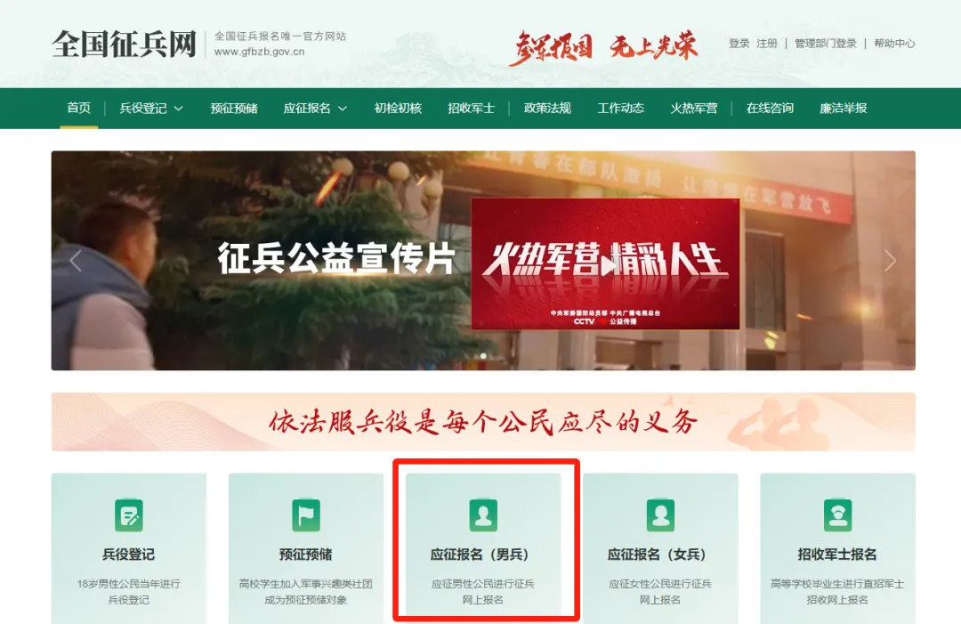 征兵报名唯一网站: