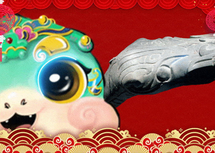 结合2025年春节联欢晚会“巳巳如意,生生不息”的主题,“巳升升”的整体造型参考甲骨文中的“巳”字。头部轮廓与脸颊上的螺旋形状来源于陕西扶风法门寺唐代地宫出土的银质鎏金如意,从头部的蝙蝠装饰到尾巴点缀的寿字盘长结,通身典故寓意着“福从头起,尾随如意”。
