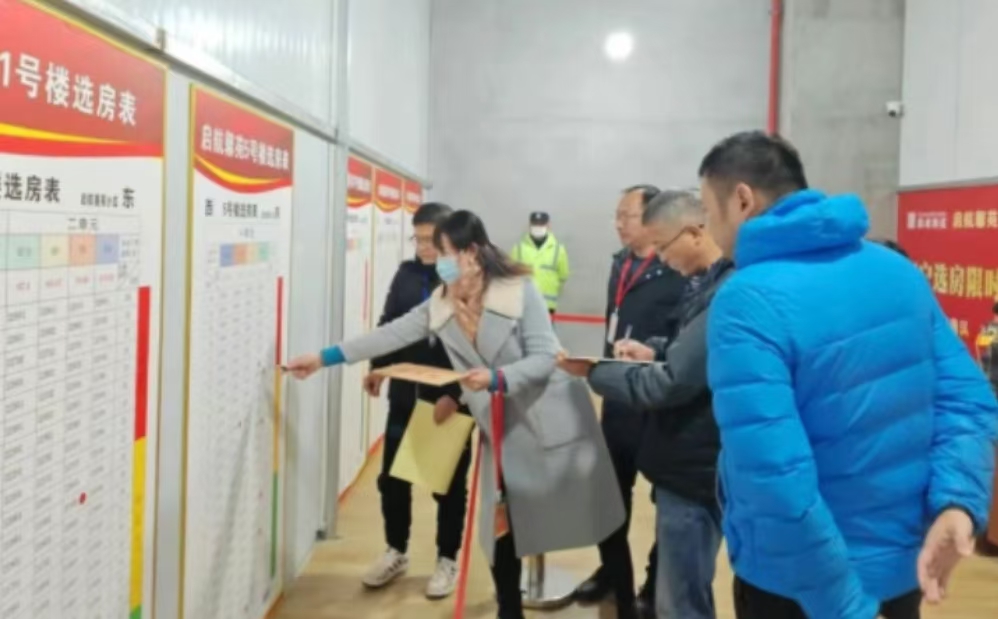 选房当天,群众早早就赶到现场,在工作人员引导下有序逐次进场。现场整齐摆放着流程图、房屋户型图等展板,供群众直观了解选房流程和相关信息。此外还设置了多个功能区域,确保选房现场有序进行。选房开始后,材料审核、房源挑选、签字确认、协议签订等各环节紧密衔接、高效推进。