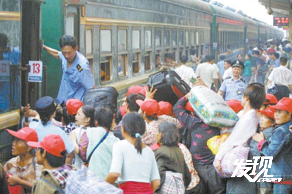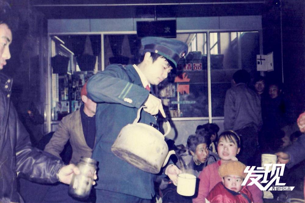 80年代西安火车站职工正在为旅客提供饮水服务。