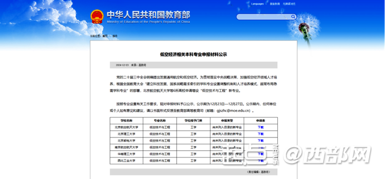 记者日前从西北工业大学了解到,西北工业大学主动面向国家重大战略需求,深入推进“总师育人文化”走深走实,围绕“低空经济”领域,超常布局国家急需紧缺专业,申请增设“低空技术与工程”本科专业。该专业申报材料已于近日在教育部官网公示,与西北工业大学一同申请增设该专业的还有北京航空航天大学、北京理工大学等6所高校。