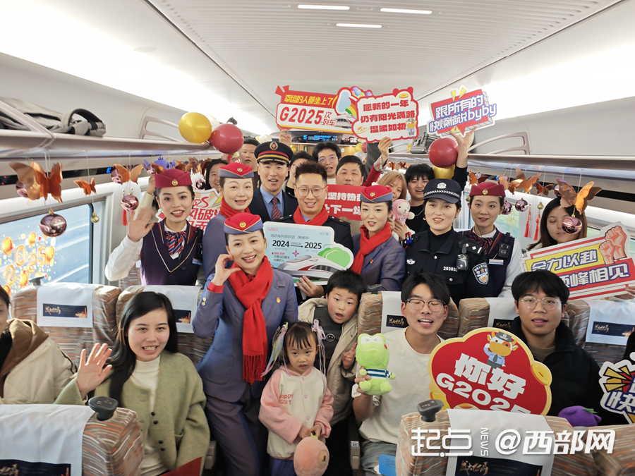 西部网讯(记者 杨晏宁 通讯员 李弢 刘桐飞 秦凯)一元复始,万象更新。今天(1月1日)14时41分,由中国铁路西安局集团有限公司(下称西安铁路局)担当的G2028次列车从西安北站缓缓驶出,一路向东开往杭州西站。这趟列车在途经商丘站后,变更车次为G2025次,与刚刚到来的2025年巧妙重合,成为名副其实的“新年列车”。在元旦这一天,旅客们乘坐着G2025次列车,带着对新年的美好祝愿,开启新年新征程。