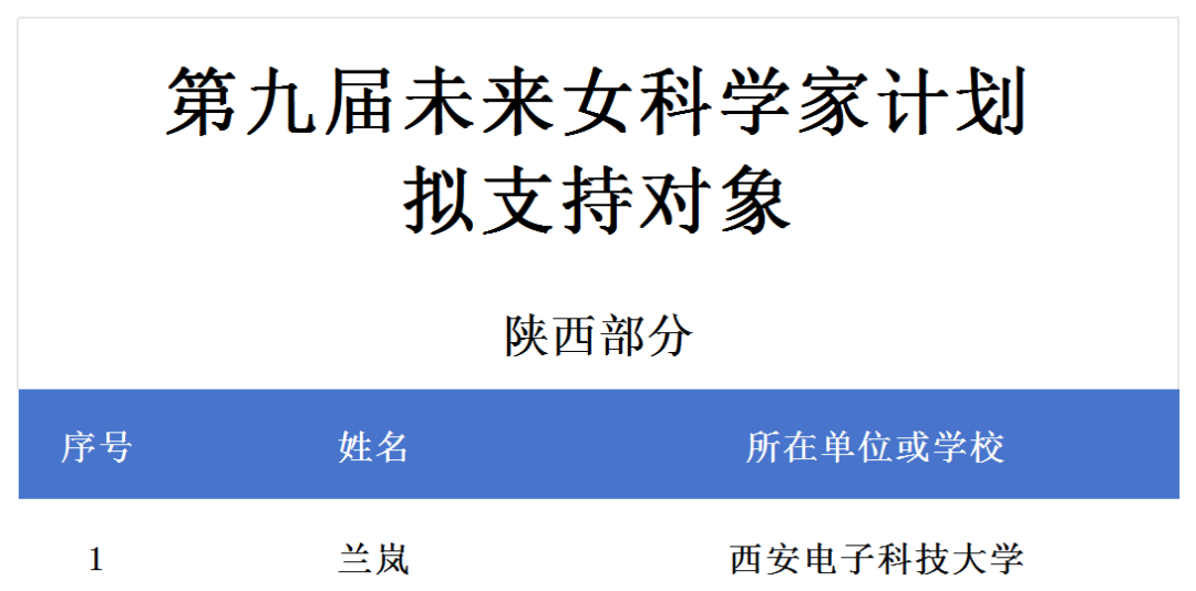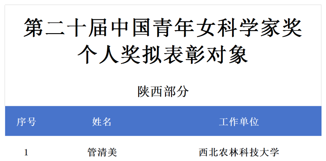 中国青年女科学家奖名单公示!陕西两人入选→