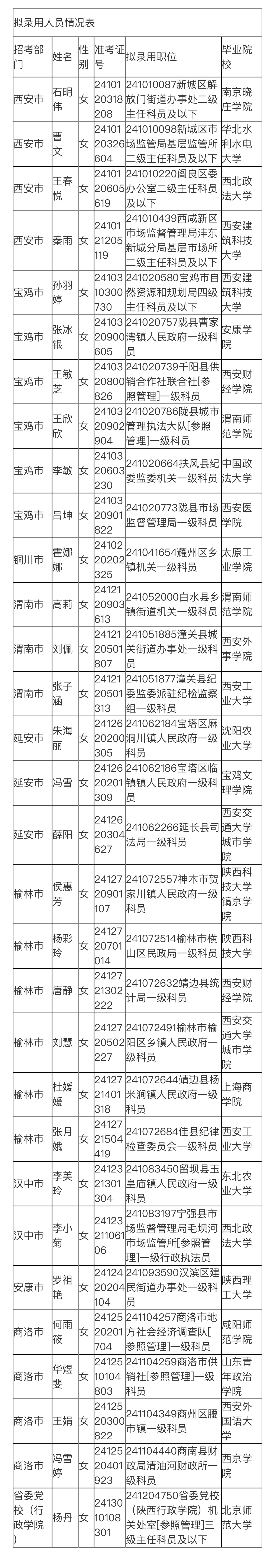 陕西省2024年统一考试录用公务员部分职位拟录用人员公示
