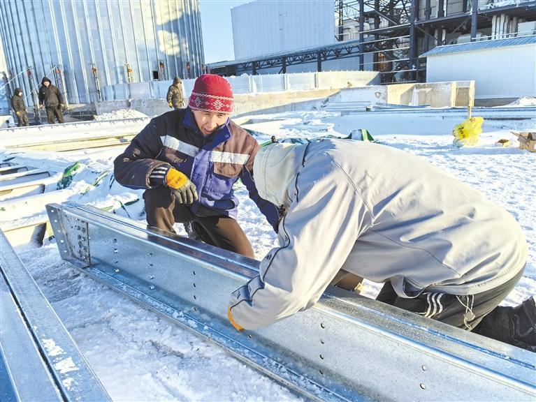 西安爱菊粮油工业集团员工在哈萨克斯坦紧张施工(资料照片)。