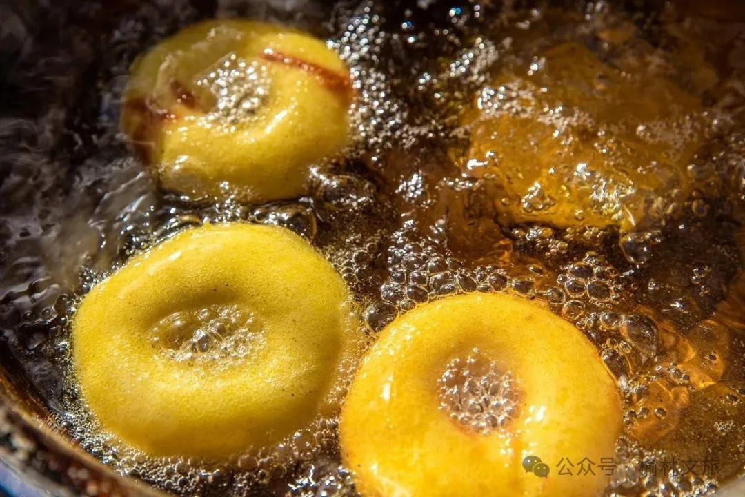 年味似陈酿的美酒,愈发浓郁醇厚。漫步在黄河岸边的村落,美食的香气弥漫在古镇的每一个角落。炸丸子、炸油馍馍、烤蜜枣的香味,丝丝缕缕,钻进鼻腔,香气愈发浓烈,混合着人间烟火的温度,勾起心底最深处对家的眷恋。陕北年茶长街宴,汇聚了地道的陕北风味,口感香脆、轻薄如纸的碱饼,肉质鲜嫩、肥而不腻的包头肉,色泽褐黄、焦黄酥脆的马蹄酥,每一口都是对味蕾的极致诱惑。