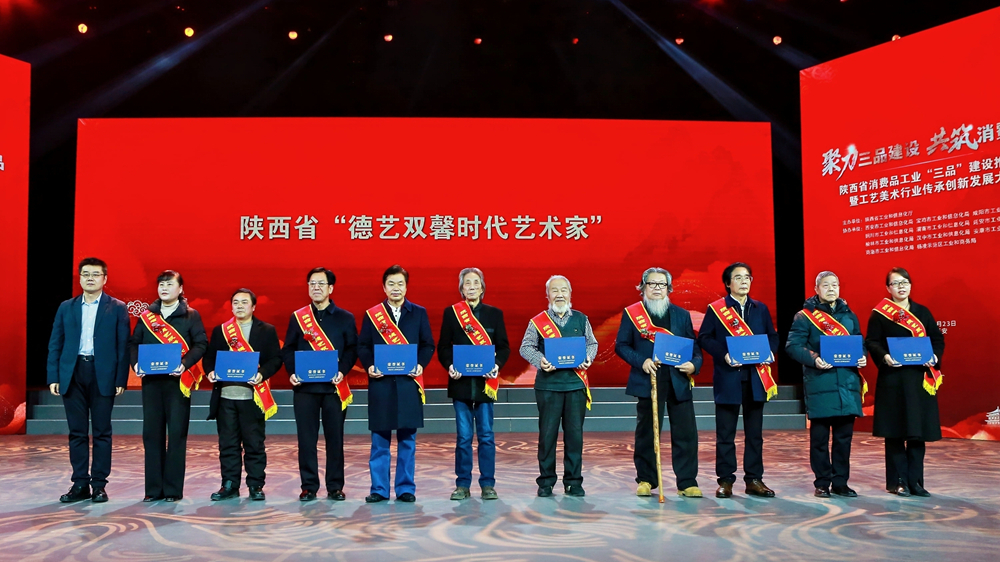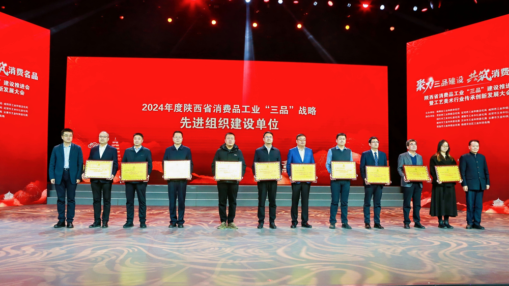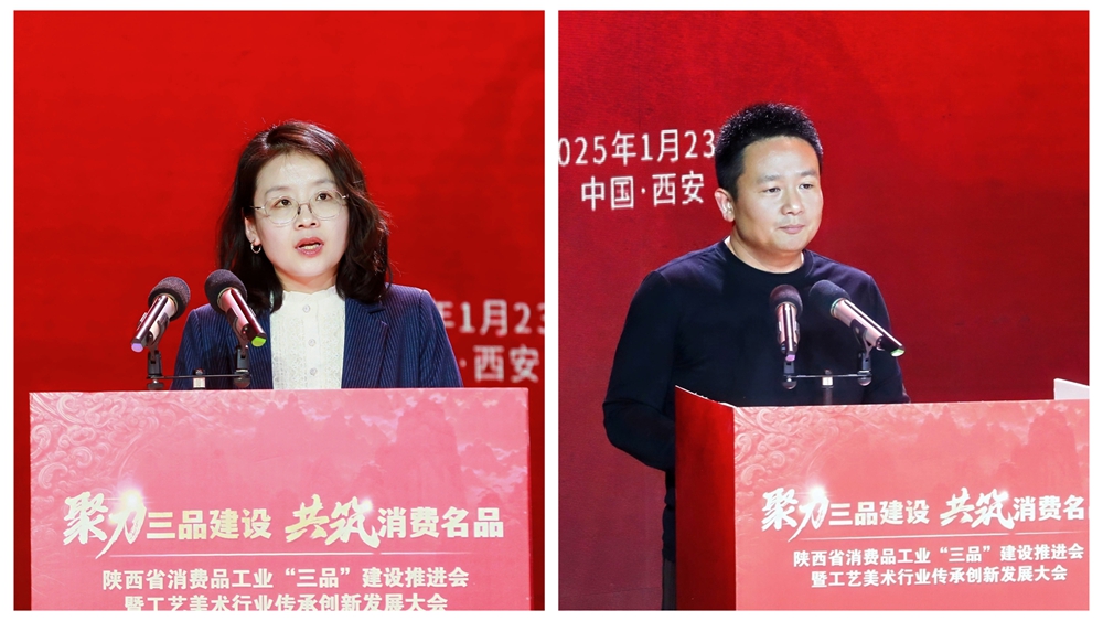 1 月 23 日,由陕西省工业和信息化厅主办的全省消费品工业 “三品” 建设推进会暨工艺美术行业传承创新发展大会在西安召开。大会总结2024年全省消费品工业 “三品” 建设取得的成绩和经验,安排部署2025年消费品工业发展重点工作。陕西省工业和信息化厅党组成员、副厅长刘波,陕西广电融媒体集团(台)党委委员、副总经理鲁吉安,苏陕东西部合作发展促进会党委书记、主席刘浩春,国杰院士专家服务中心主任罗鹏斌等出席大会。