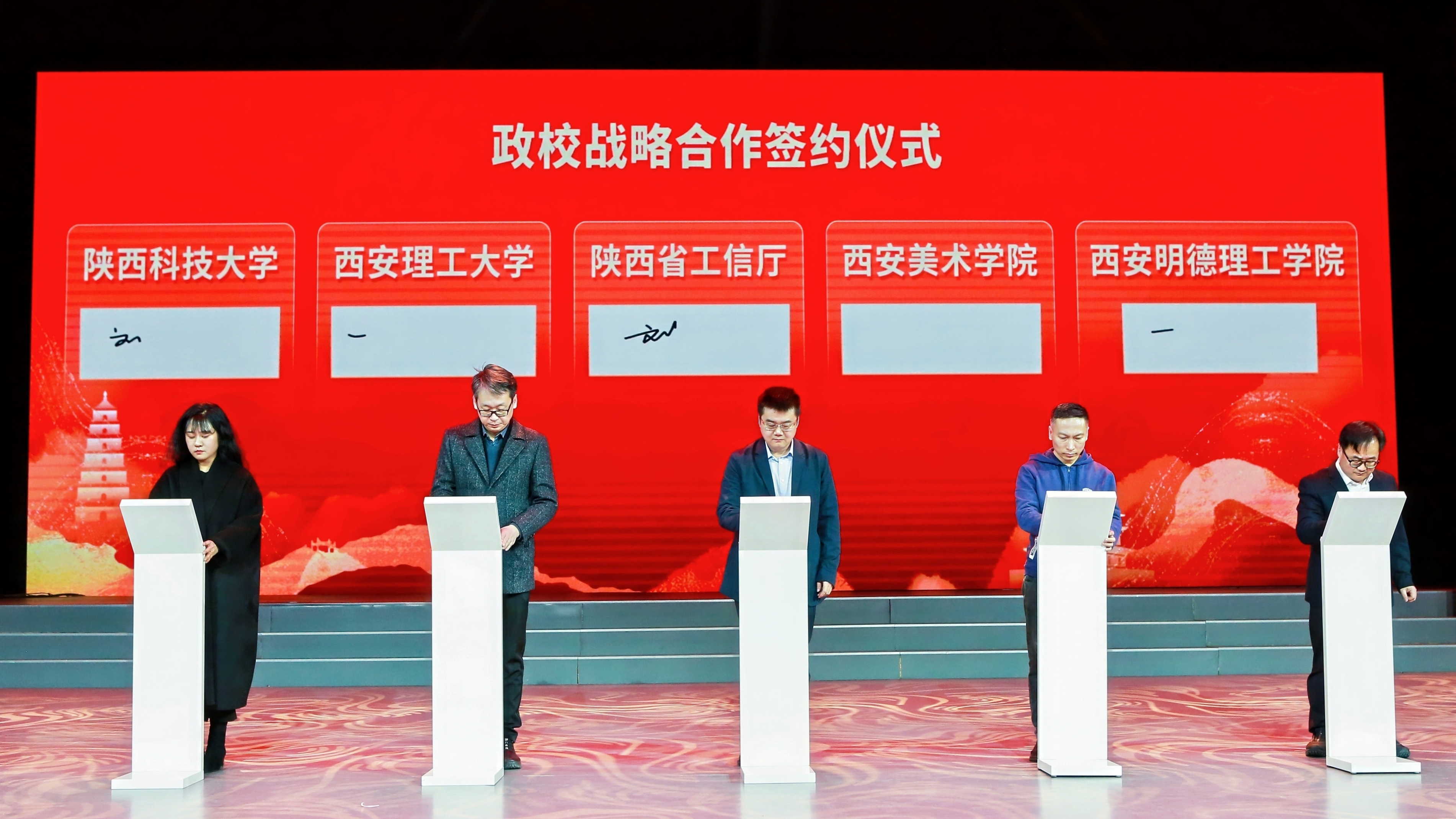 会上,省工业和信息化厅党组成员、副厅长刘波致辞,消费品工业处处长李洁汇报了 2024 年全省消费品工业 “三品” 建设工作成果;对2024 年度消费品工业 “三品”建设先进组织建设单位、战略示范单位和优秀个人进行了通报表扬,为获得 “德艺双馨时代艺术家”、“新时代精品工作室”、“陕西省新时代行业艺术推广大使” 和 “传世珍品” 称号的工艺美术行业优秀工作者和作品颁发了证书与牌匾;与陕西科技大学人文艺术学院、西安理工大学人文艺术学院、西安美术学院特教学院、西安明德理工学院人文艺术学院签署了政校战略合作协议,与陕西广电融媒体集团(台)共同启动了 “陕西省消费品工业品牌推广基地”“‘千年陕菜・碳水之都’‘陕西臻品・陕品好物’直播电商基地”“陕西省工艺美术文化交流中心”建设。中国工艺美术大师李竹玲分享了创作经验和心得体会,渭南市、安康市工业和信息化局相关负责同志分享了实施消费品工业“三品"战略工作经验,陕西西凤酒股份有限公司、陕西黄官酒业有限公司相关负责人分享了推进“三品” 建设经验。