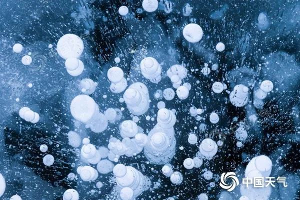 东北、新疆等地的冬天来得早,12月下旬至次年1月湖面冰层已经十分厚实。赛里木湖是新疆最大的高山湖泊,冬日湖面冰封如镜,冰泡景观为这里增添了几分灵动之感。冰泡形状不一,有的像圆饼,有的像葡萄,其实它们都是甲烷气体被冻结的杰作。冬日的赛里木湖气温迅速下降,湖面在短时间内结冰,将许多厌氧微生物“封”在冰层里,微生物分解成甲烷,并被“封印”在冰层中,就形成了姿态各异的冰泡奇景。