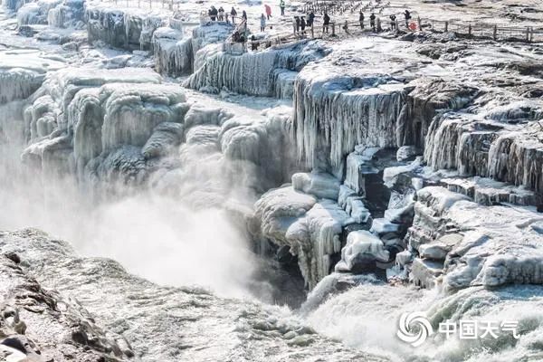 寒冬时节,黄河壶口瀑布两岸的冰挂晶莹剔透。