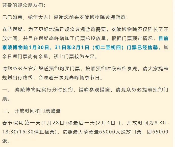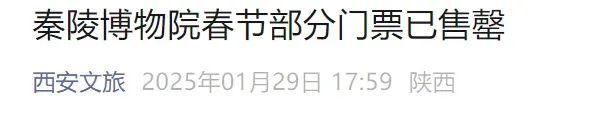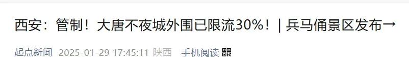 4.1月29日晚,大唐不夜城外围已限流30%。秦陵博物院春节部分门票已售罄。