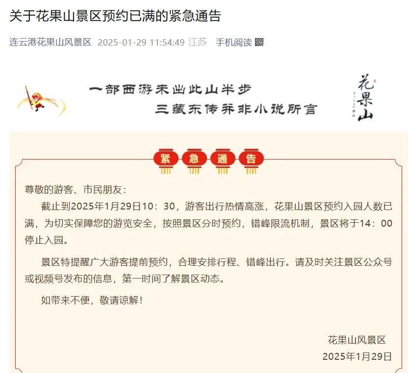 3.浙江神仙居景区1月30日(正月初二)门票预约已满,将采取限流措施。