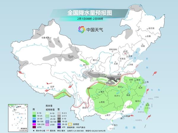 今天,雨雪继续铺展,过程将持续至初五。中央气象台预计,今天,新疆北部、黑龙江北部、西藏东南部、川西高原北部、西北地区东南部、江汉北部、黄淮西部等地部分地区有小到中雪或雨夹雪,其中,新疆西北部山区、河南南部、湖北西北部、陕西南部、川西高原北部等地局地有大到暴雪。江淮、江汉大部、江南大部、西南地区东部、华南北部和东部沿海等地部分地区有小到中雨,局地有大雨。