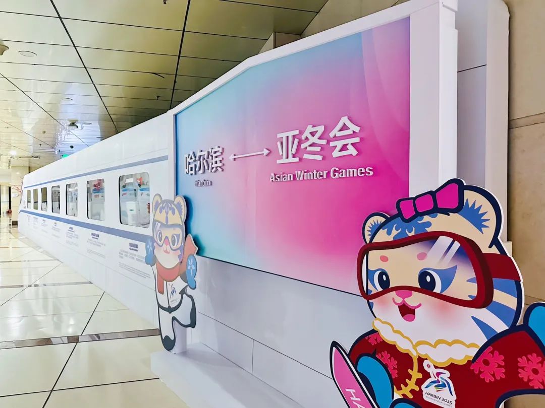 在二楼文化展示区,左侧亚冬会历届展览生动的展现着亚冬会的发展历程与辉煌成就,右边一辆从哈尔滨驶向亚冬会的“亚冬号”列车模型赫然在目,象征着哈尔滨这座“双亚冬之城”对此次亚冬会的热切期待。这短短一程旨在让每一位到访的媒体记者和来宾都能深刻感受到哈尔滨与亚冬会不解的渊源。