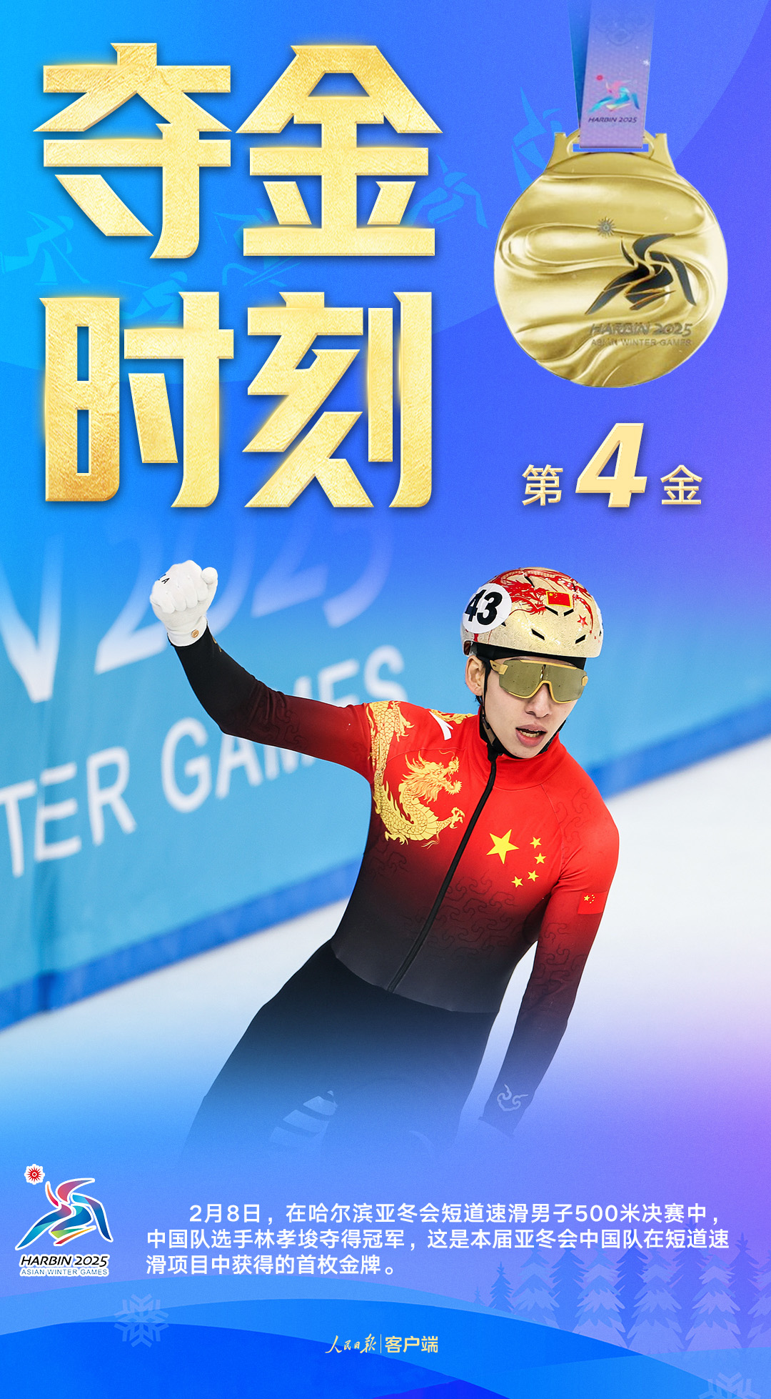 又一金!林孝埈摘得短道速滑男子500米金牌 人民日报客户端 02-08 14:38 8日,在哈尔滨亚冬会短道速滑男子500米A组决赛中,中国队选手林孝埈摘得金牌,为中国短道速滑队摘得在本届亚冬会上的第一枚金牌。 编辑:崔雨露
