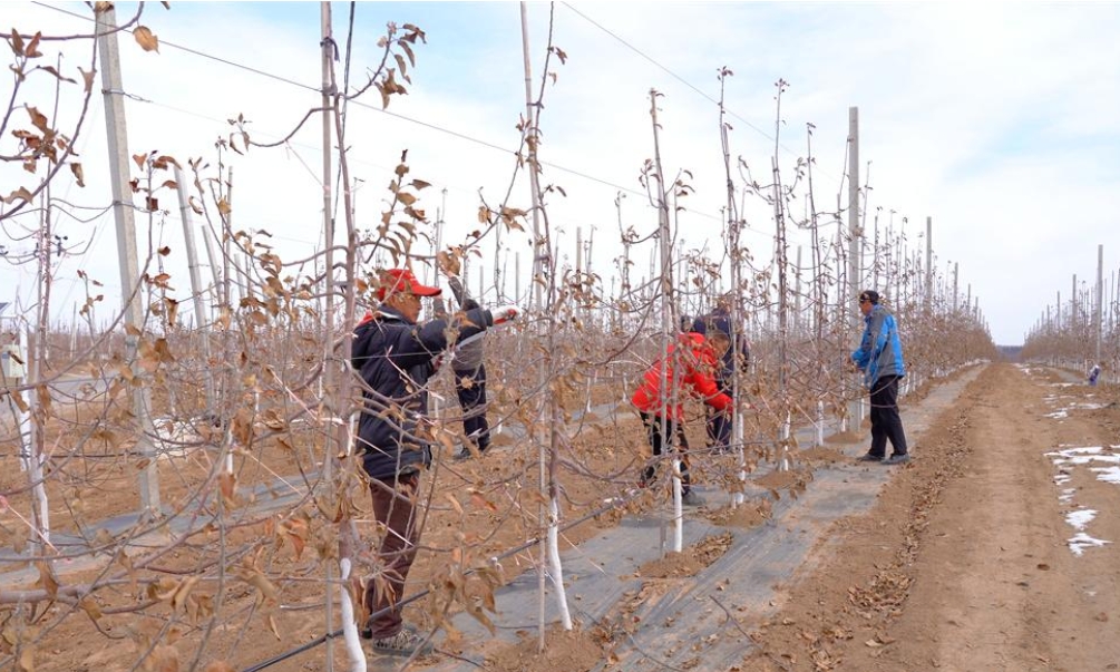 走进永宁村果农薛志先的矮化果园里,映入眼帘的是一片繁忙景象。薛志先正手持修剪工具,在果树间穿梭,在“咔嚓”声中,多余的枝条纷纷落下,果树被修剪得疏密适宜、错落有致。“对新栽的幼园进行休眠期修剪,能调整枝干比、培养好的结果树型、节约一部分养分,对开花长叶也有很大好处。”薛志先介绍道。