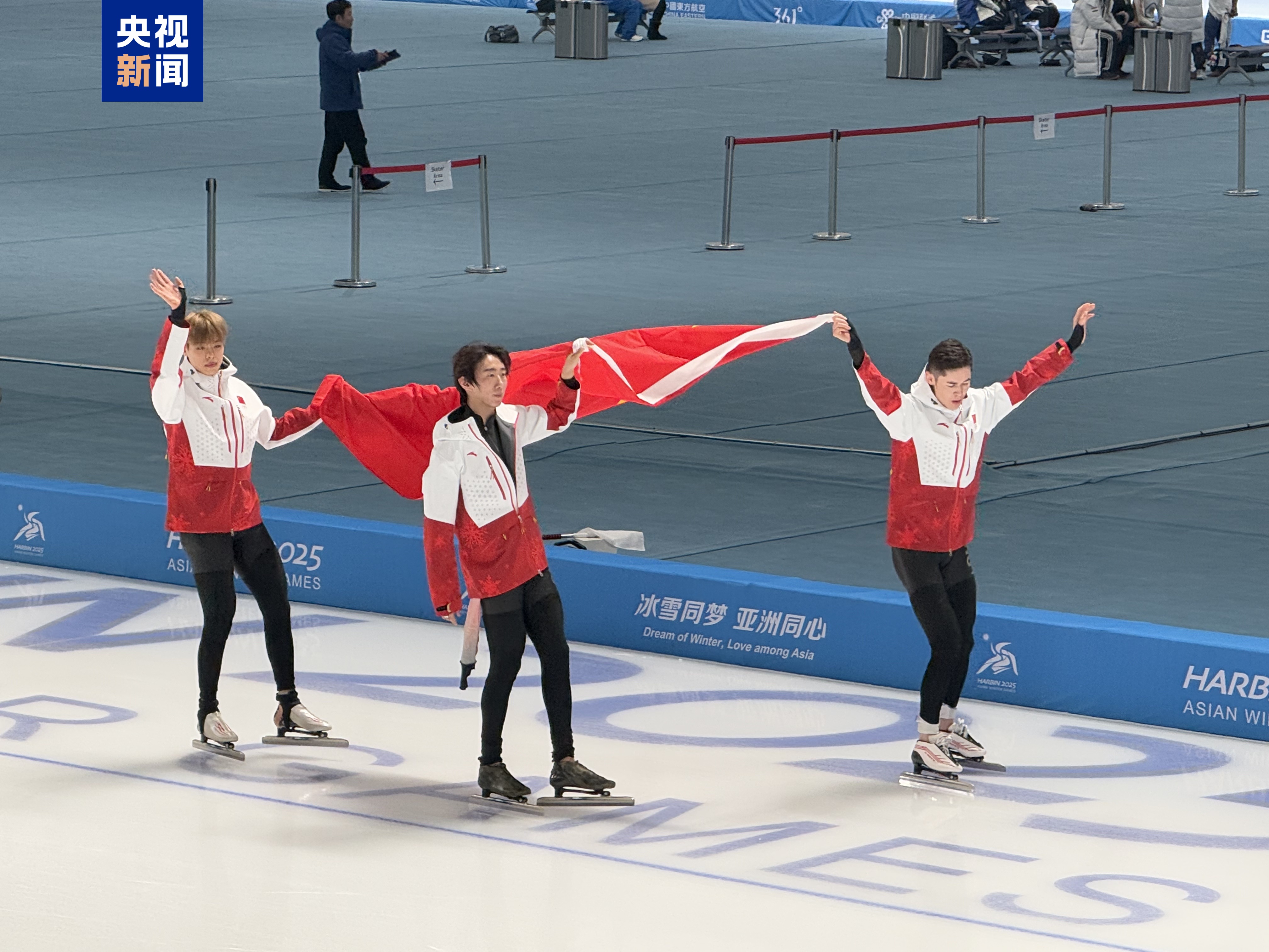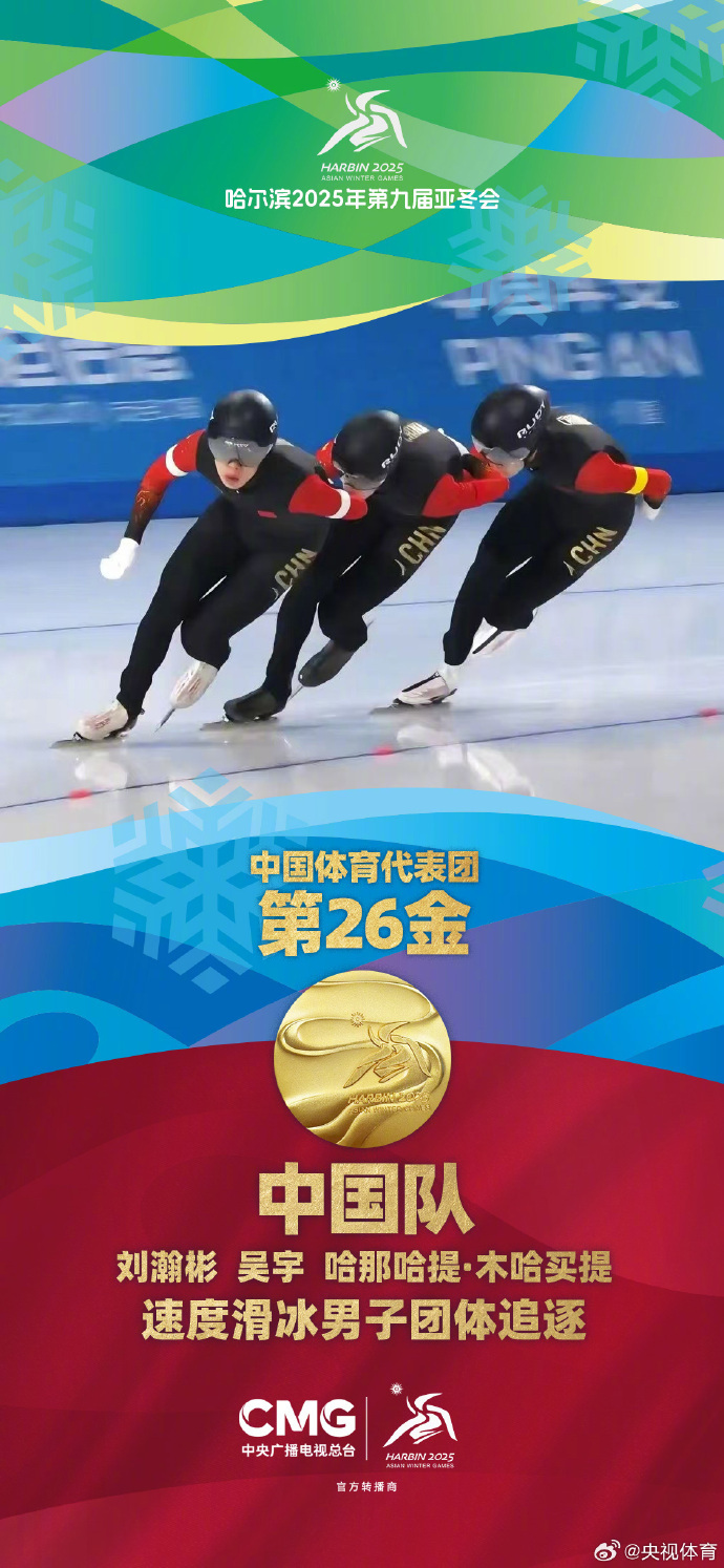 第26金!中国队夺得亚冬会速度滑冰男子团体追逐金牌 央视新闻客户端 02-11 14:57 2月11日,哈尔滨亚冬会速度滑冰男子团体追逐决赛,由刘瀚彬、吴宇、哈那哈提·木哈买提组成的中国队配合默契,以3分45秒94的成绩夺得金牌。 编辑:李欢