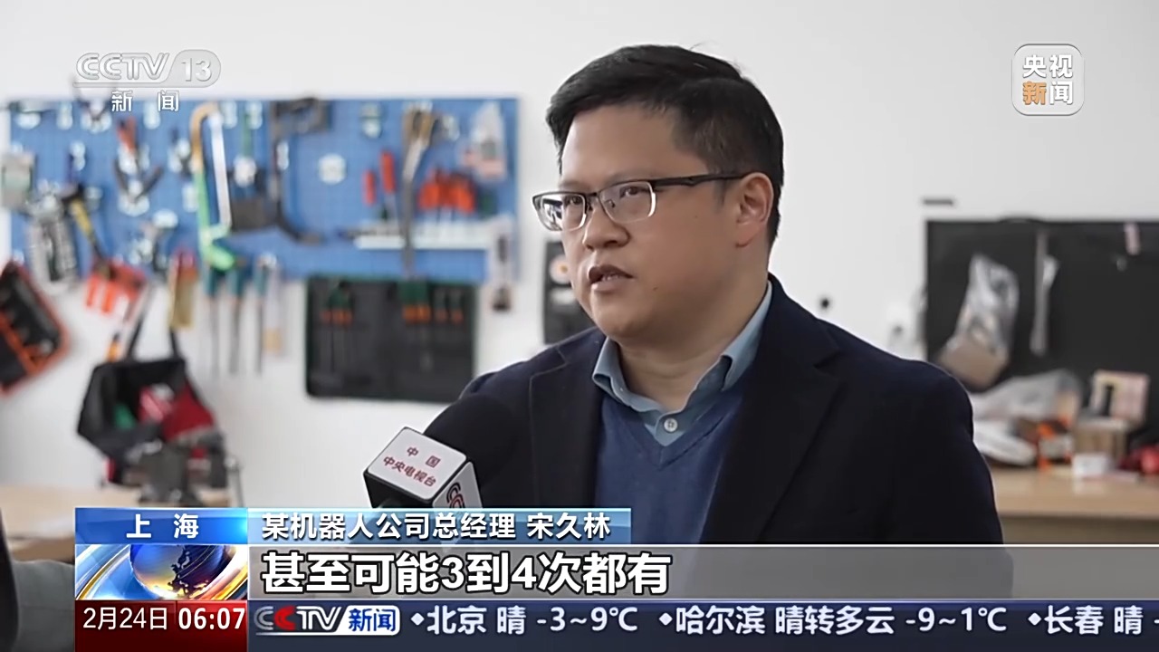 某机器人公司总经理 宋久林:现在基本上一个星期左右会有2~3次,甚至可能3~4次都有,外资会占到80%左右。