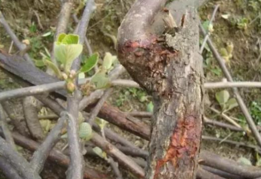 清除发病枝:伤流期开始,每4~6天全园仔细检查一次,对发现病斑的小枝,在病斑口下20厘米剪去。粗枝要刮除菌脓和病皮。清除后都要带出果园烧毁或深埋。