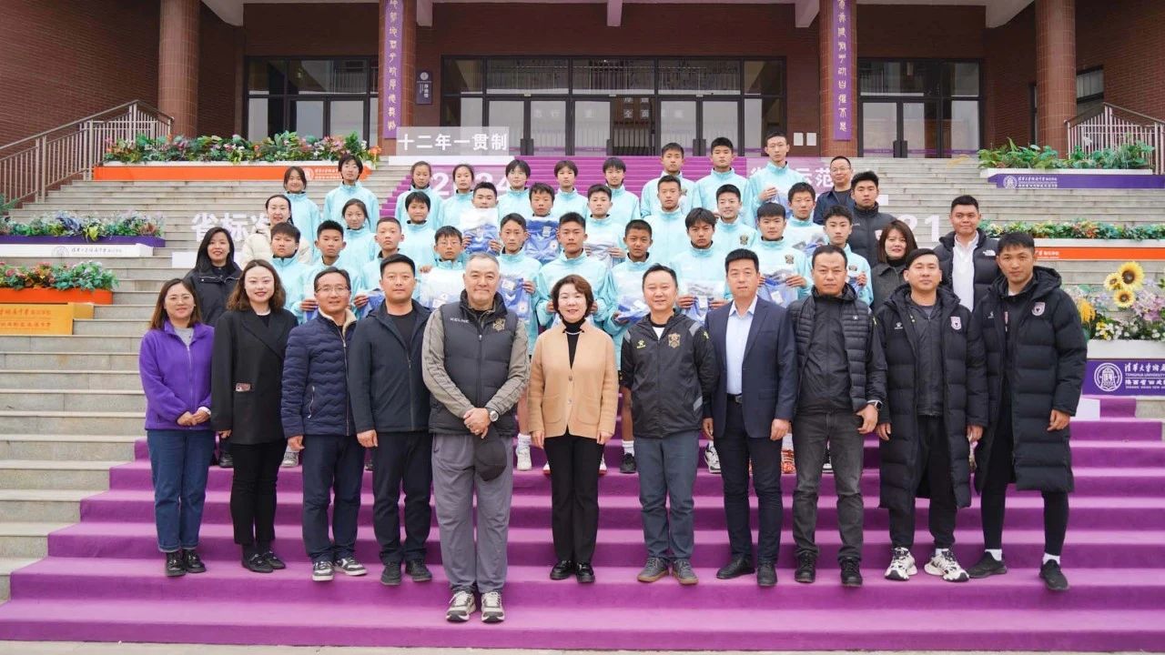 仪式最后,俱乐部为秦汉中学U13男子足球队员赠送了球衣并合影签名。
