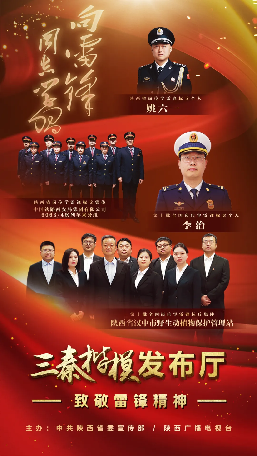 本期《三秦楷模发布厅》主题为“致敬雷锋精神”,讲述了第十批全国岗位学雷锋标兵集体——陕西省汉中市野生动植物保护管理站汉中;第十批全国岗位学雷锋标兵个人——李治;陕西省年度岗位学雷锋标兵集体——中国铁路西安局集团有限公司6063/4次列车乘务组;陕西省年度岗位学雷锋标兵个人——姚六一,在平凡工作中创造不平凡业绩,诠释新时代雷锋精神的感人故事。