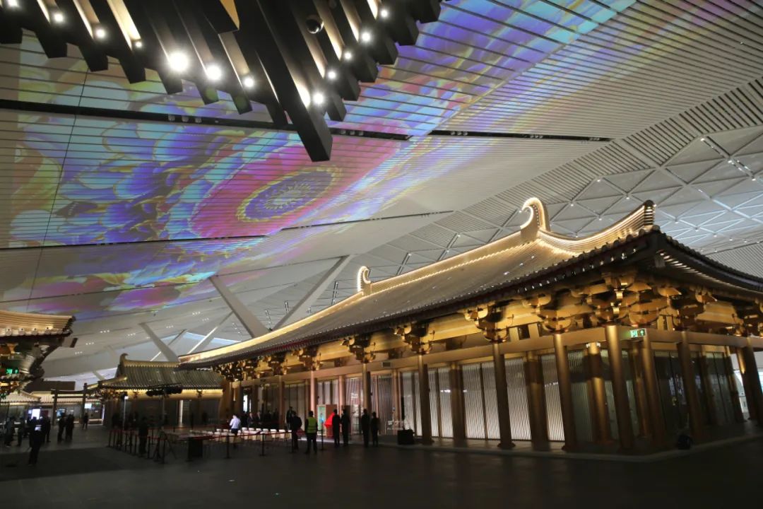 西部机场博物馆建筑群本身极具文化属性,被网友戏称——含“唐”量严重超标。唐代大明宫含元殿三层重檐结构复刻,长安城九宫格棋盘“里坊制”布局,6400平方米的空间成了“时空驿站”,旅途中匆匆一瞥即可穿越千年。