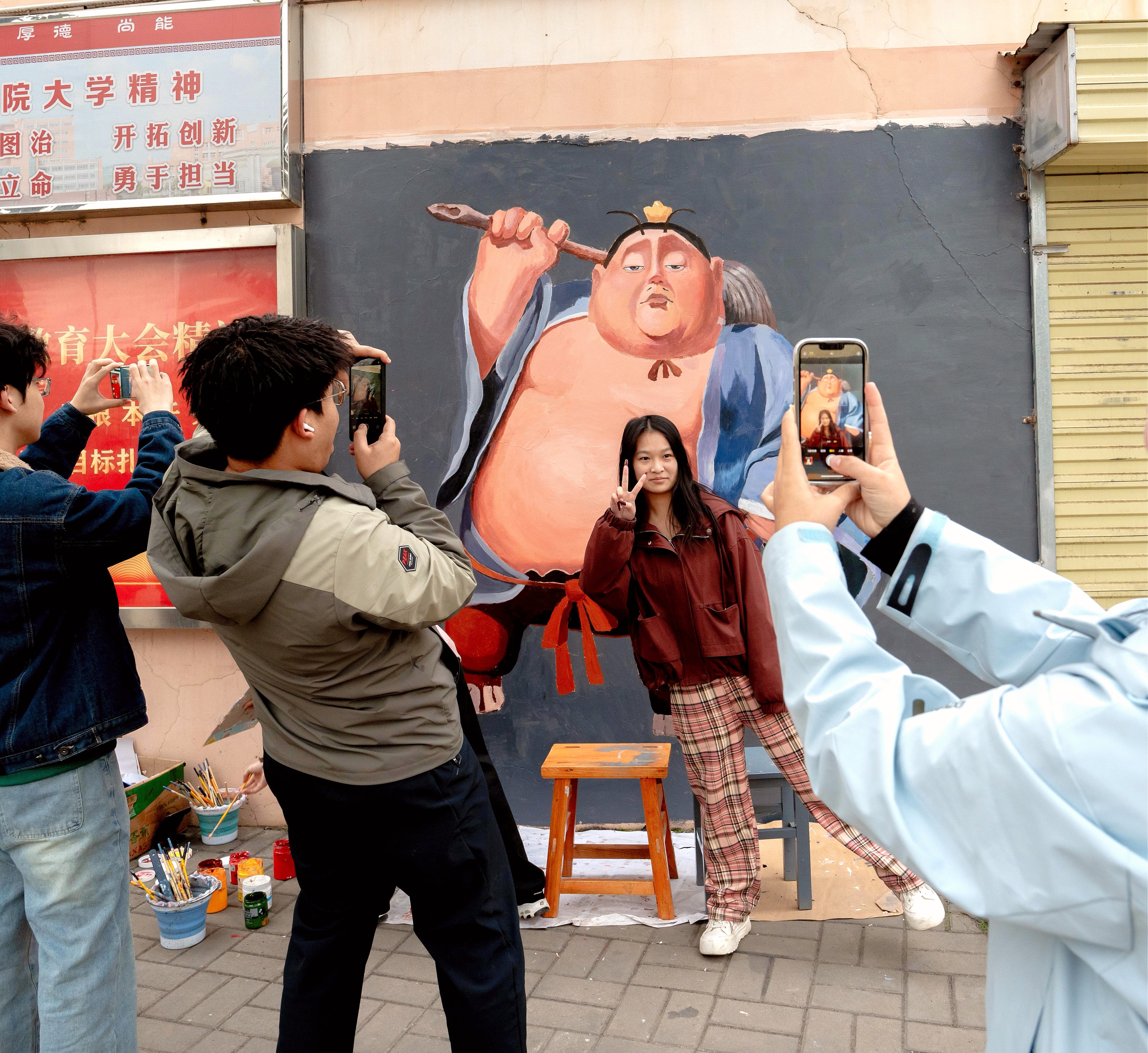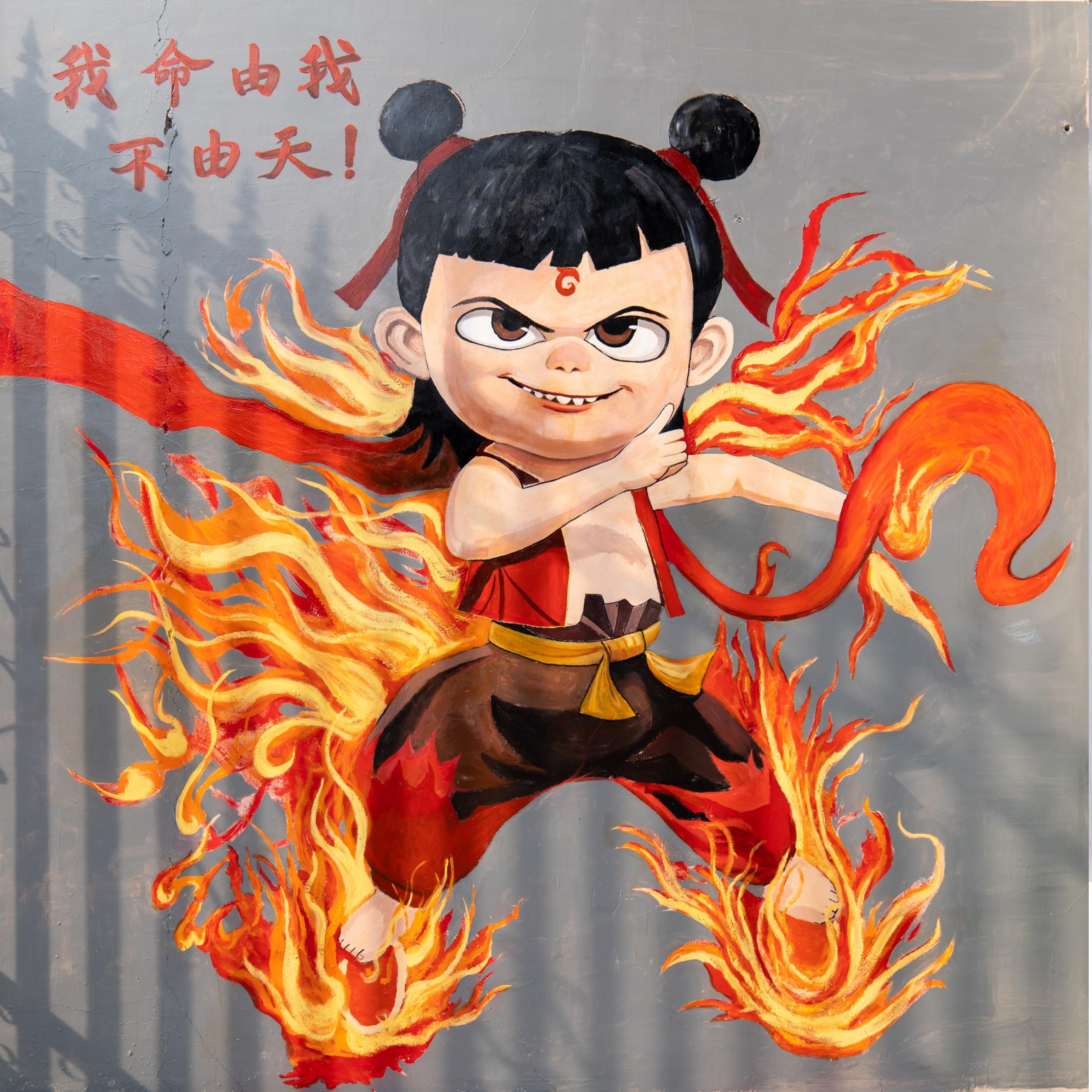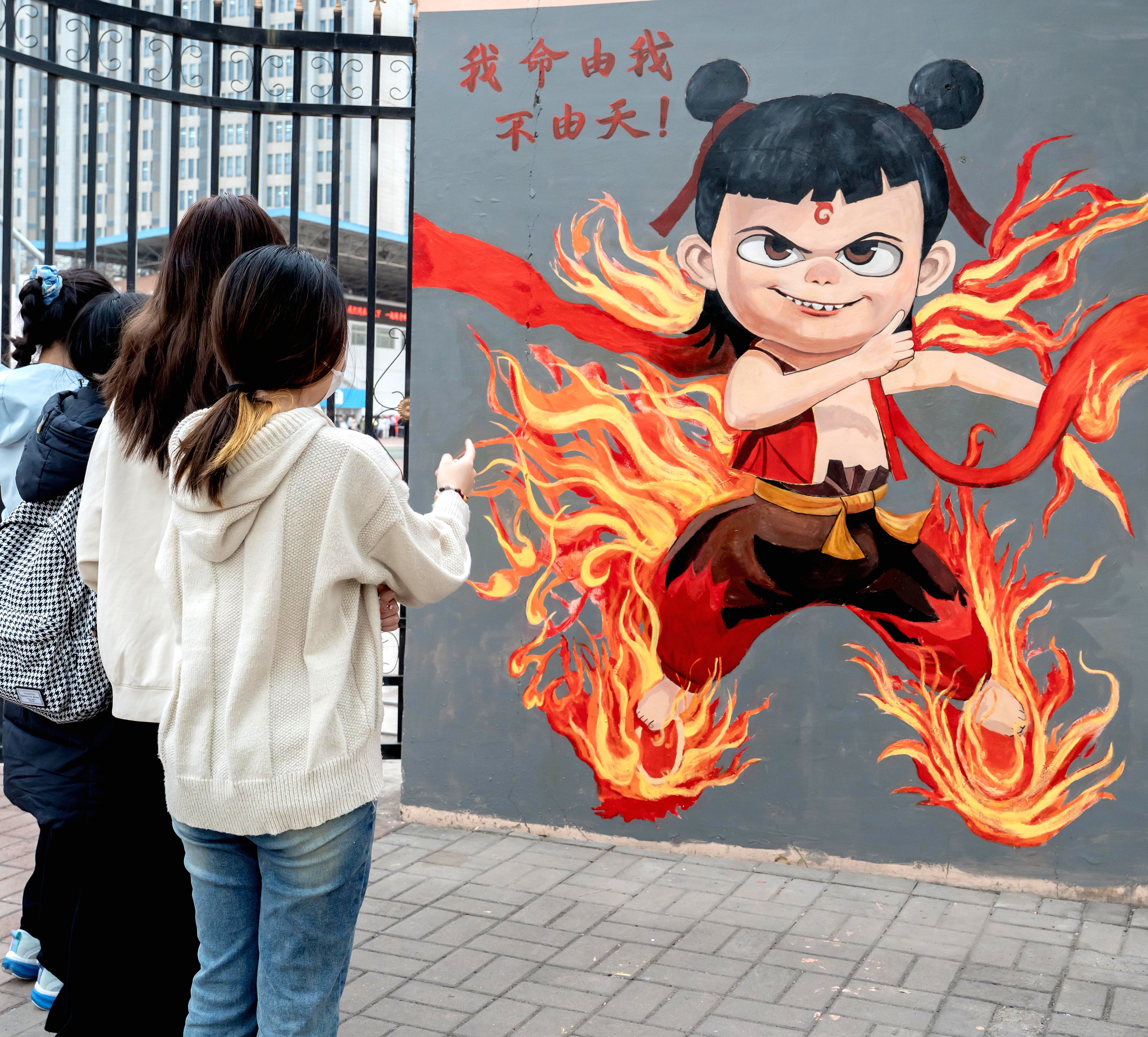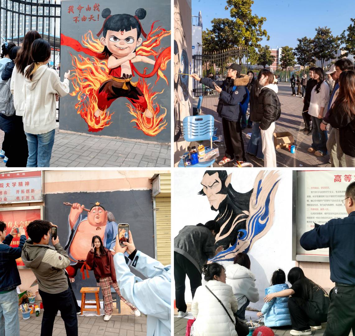 “哪吒”走进宝文理 主题彩绘墙吸引学生驻足打卡