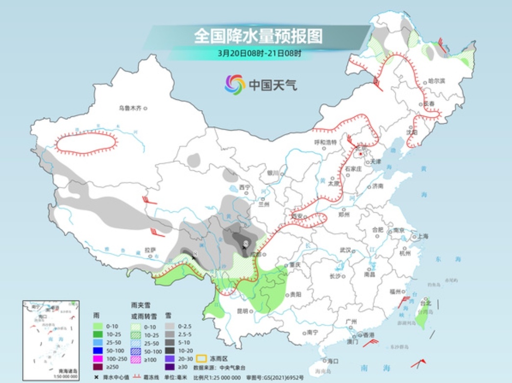 今天(3月20日)进入春分节气,一年中升温最快的时节到来,应景的是,目前正在经历一轮持续时间长、升温幅度大的回暖过程,未来六天,最高气温20℃线将逐渐北抬至吉林中南部一带,华北及其以南最高气温将有大片25℃以上区域,多地将体验常年5月中下旬的气温。升温的同时,中东部大部地区降水稀少,雨雪主要集中在西南地区,云南、西藏等部分地区需警惕持续降雨可能引发的次生灾害。