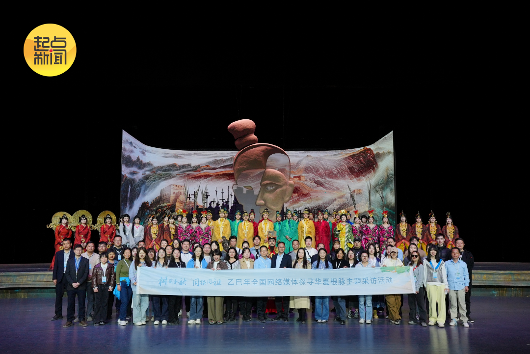 “树载千秋 同根同祖”乙巳年全国网络媒体探寻华夏根脉主题采访媒体团在《秦俑情》演出现场合影。