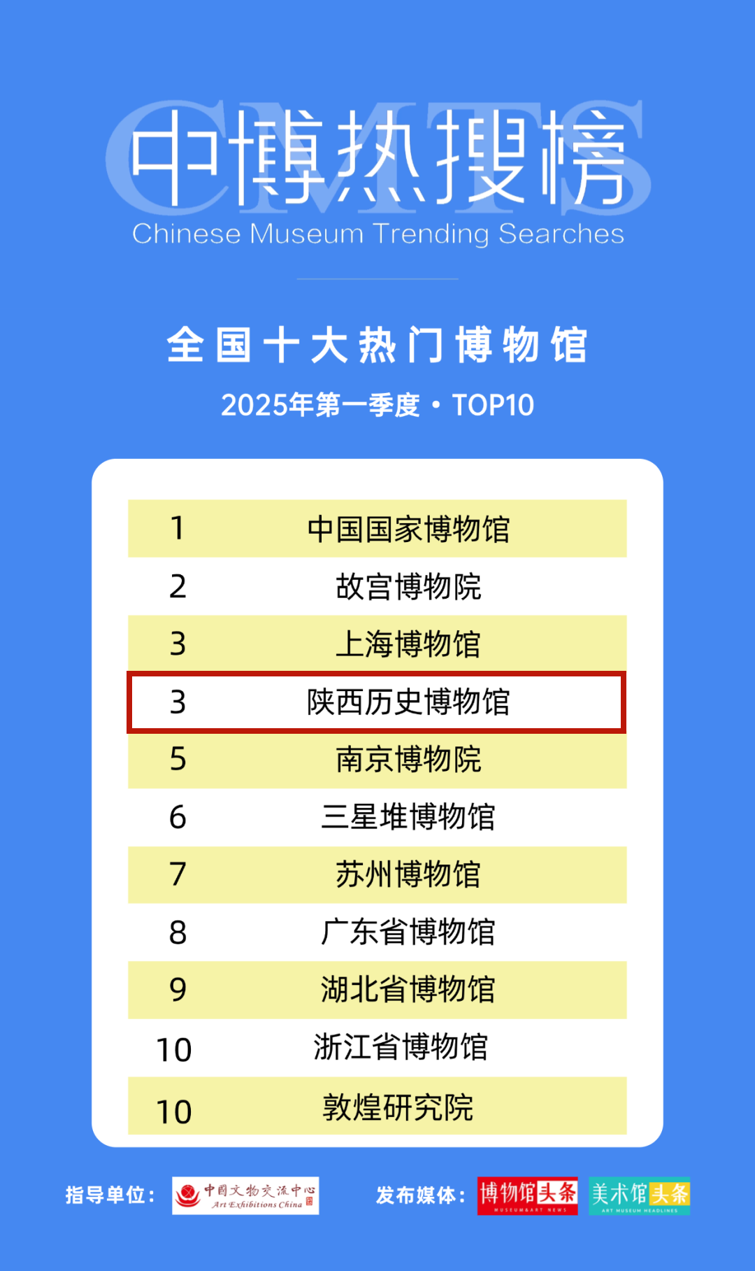在2025年第一季度“全国十大热门博物馆”中,陕西历史博物馆位列第三。